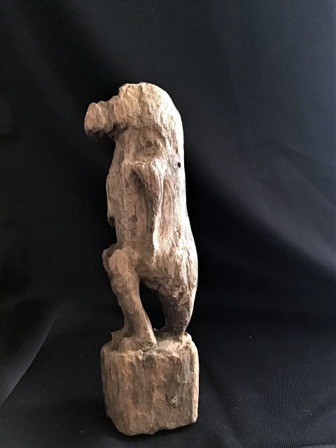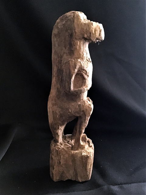 | 横からだと、ワニ感がでています。 祖霊像のワニなので、ワニが擬人がされると、 やはり漫画に登場するワニのようになりますね。 尻尾と後ろ足で立っています。それとも尻尾で座っているのかな。 |