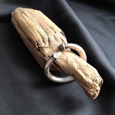 | 愛用の腕輪を首にかけました。 大きさの比較と思ったのですが、 ジュエリーを掛けたり置いたりしても素敵です。 膝の上に置いて撫でることもできます。 |