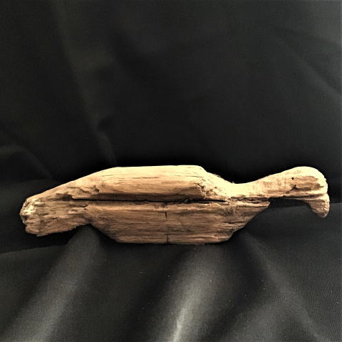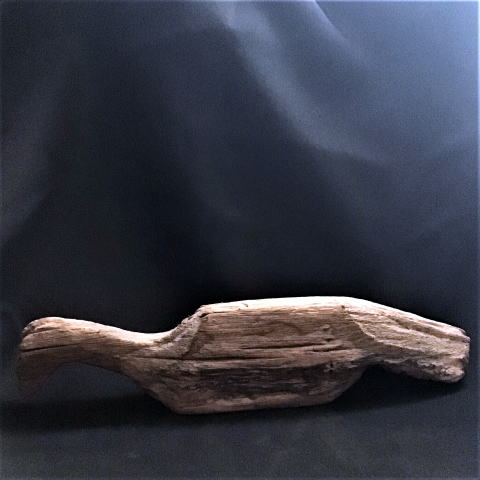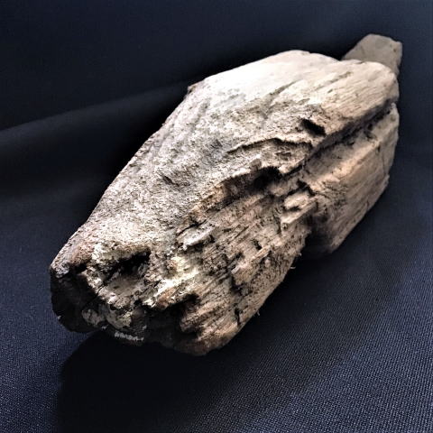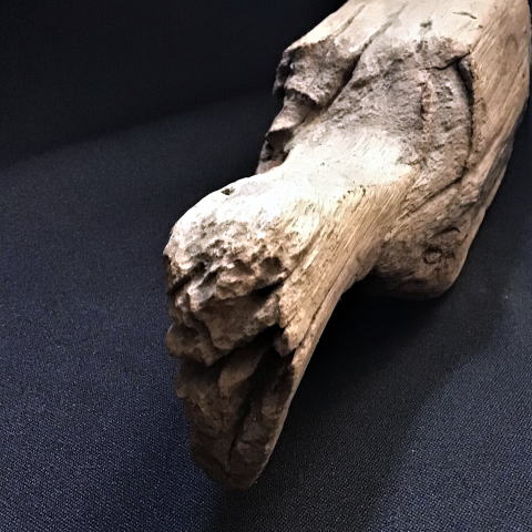 | 反対側です。 こちらには深い亀裂が入っています。 この層になったような木の肌合いが、尾羽の良い表情にもなっています。 |