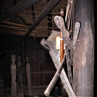 | 自然崇拝が色濃く残る土地では, 人々の暮らしの中に動物たちの形を見つけることができます。 自然界にともに暮らす動物たちを注意深く観察し、 人間の持ちえない能力や習性に畏敬の念を抱き、信仰の対象とされてきました。 動物たちは、神、祖先の使いであり、神、祖先そのものでもあり、 また親しい友人にも、逆に敵にもなります。 口承で語り継がれる民族神話の中にもたくさんの動物たちが登場します。 今回の「木の動物たち」ではインドネシア、スンバ島コディの茅葺屋根の先端に据えられた 家の守護神”カド・ウマ(カドは守る・ウマは家)の鳥、 同じくインドネシア、西ティモールのアトニ人の鰐の祖霊像、 そしてミャンマーの郷土玩具、張子木型のキリンとウシをご紹介します。 子供の成長を祈るお守りとしての玩具もまた動物たちとの深い信頼のしるしです。 人間と動物が共存し交流する世界を楽しんでいただけると嬉しいです。 ![]()